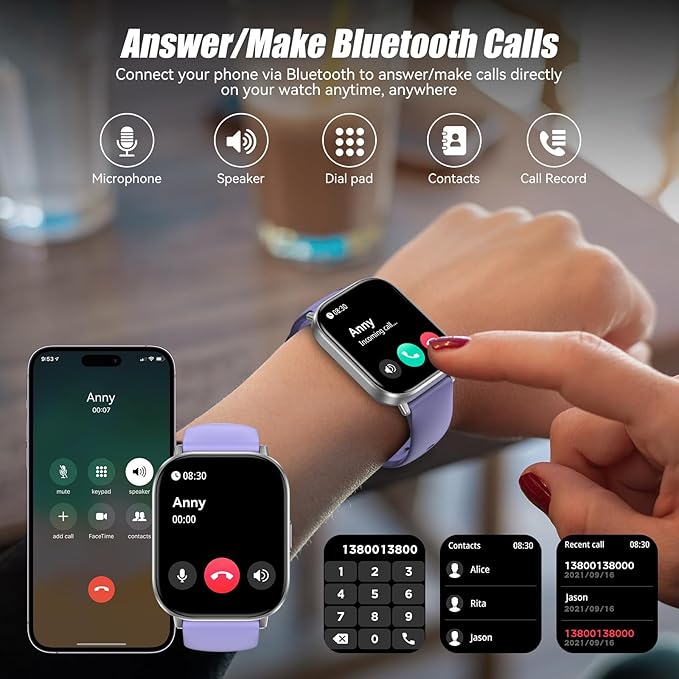 Smart Watch, 2.01" HD Touchscreen Fitness Watch, Bluetooth Calls, 120 Sports Modes Activity Tracker, 24/7 Heart Rate & Sleep Monitor, IP67 Waterproof, iOS Android Compatible (Purple)