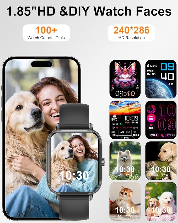 Smart Watch for Women with Bluetooth Call Answer/Dail,1.85" DIY Dial Fitness Watch with Heart Rate Sleep Monitor Step Counter 120+ Sports Modes Waterproof Women's Smart Watch for Android iOS (Black)