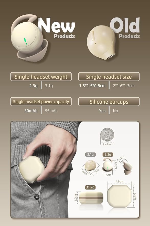 - ✅【Ultra Light & Ultra Small ✨ High Sound Insulation】Taking the needs of side sleepers as the starting point, it almost meets the high sound insulation performance and ultra light, ultra small features that people need when looking for sleep headphones. Convenient to use the headphones while sleeping, they are miniature in size, weighing only 2.1 grams per ear, and are designed to fit the shape of the ear to minimise the burden on the ear, so that they won't hurt the ear even if you roll over or fall asleep while wearing them.