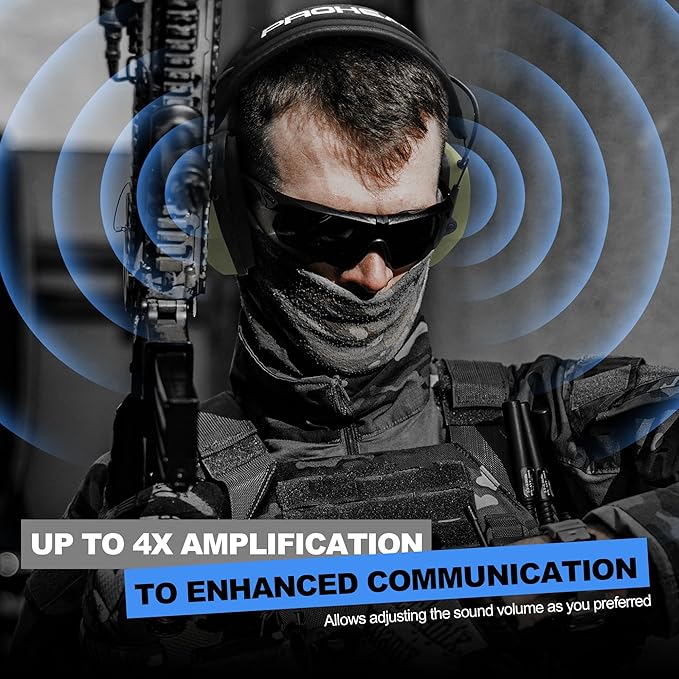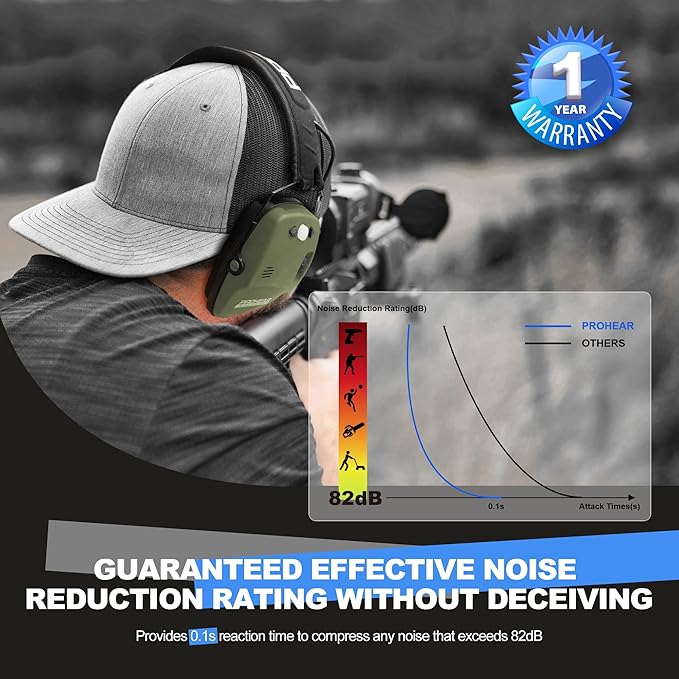 - DESIGNED FOR SHOOTING AND HUNTING: NRR 22dB/SNR 27dB. Durable recessed microphones could increase tinny environmental sound when the sound is less than 82dB while reduces wind noise, providing enhanced communication for hunting, shooting, etc; And the earmuffs with slim low-profile cups with cut-outs perfect for firearm stock clearance&rifleotgun use