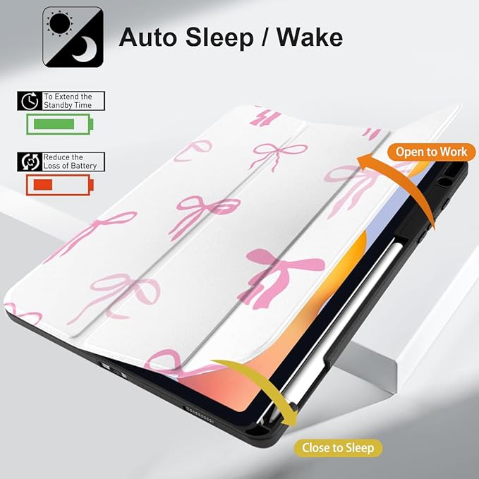 DONGKE Case for Samsung Galaxy Tab S6 Lite 10.4 Inch 2024/2022/2020, Trifold Stand + S Pen Holder + Auto Wake/Sleep + Soft TPU Protective Stand Back Cover, Pink Bows