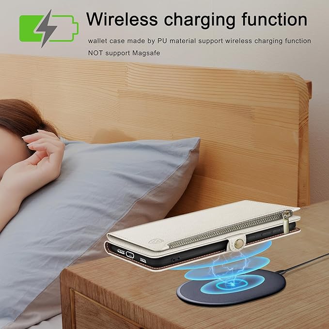XcaseBar Compatible with iPhone 17 6.3" Wallet case with Zipper Credit Card Holder【RFID Blocking】,Flip Folio Book PU Leather Phone case Shockproof Cover Women Men for Apple 17 case White