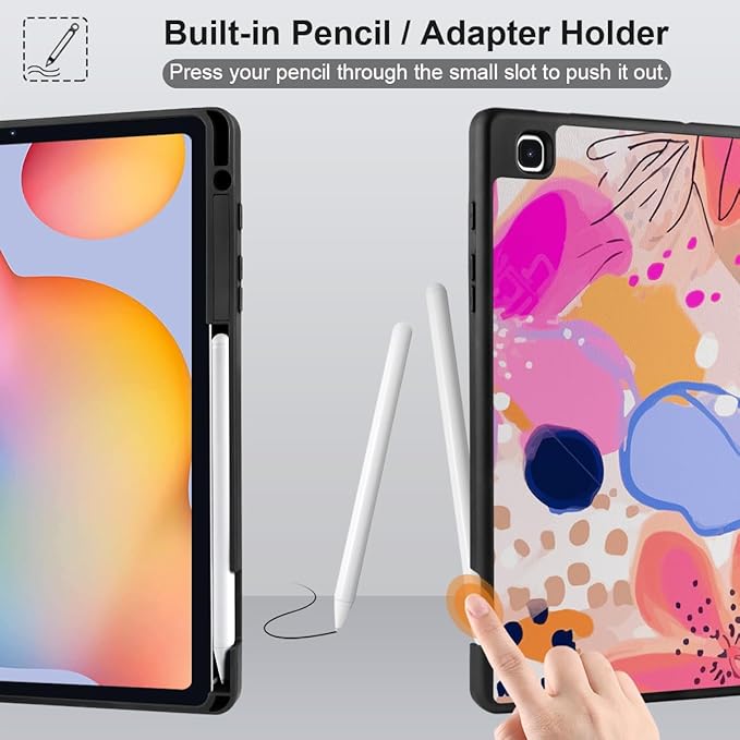 DONGKE Case for Samsung Galaxy Tab S6 Lite 10.4 Inch 2024/2022/2020, Trifold Stand + S Pen Holder + Auto Wake/Sleep + Soft TPU Protective Stand Back Cover, Floral Artistic