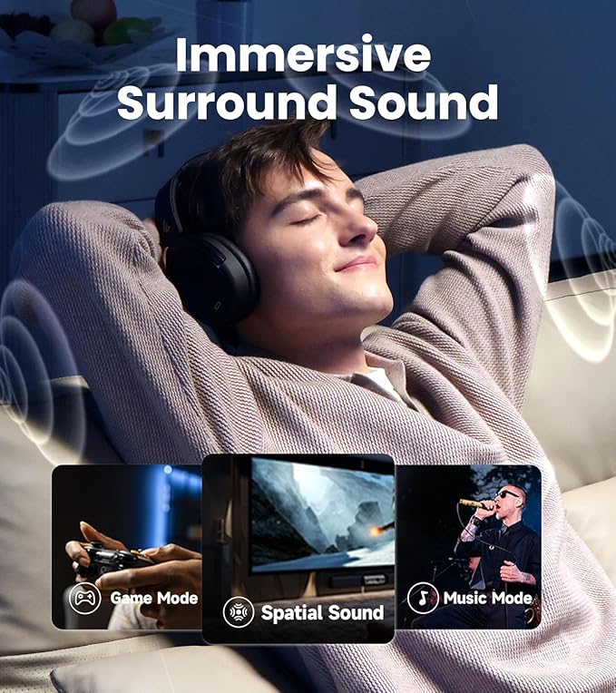 - Cinema-Grade Spatial Sound & Smart Scene Modes: Dive into 3D surround audio – activate Spatial Sound for movie nights with immersive stereo detail. One-touch switching also optimizes settings for Music Mode and Game Mode. Perfect for films, gaming, or critical listening.