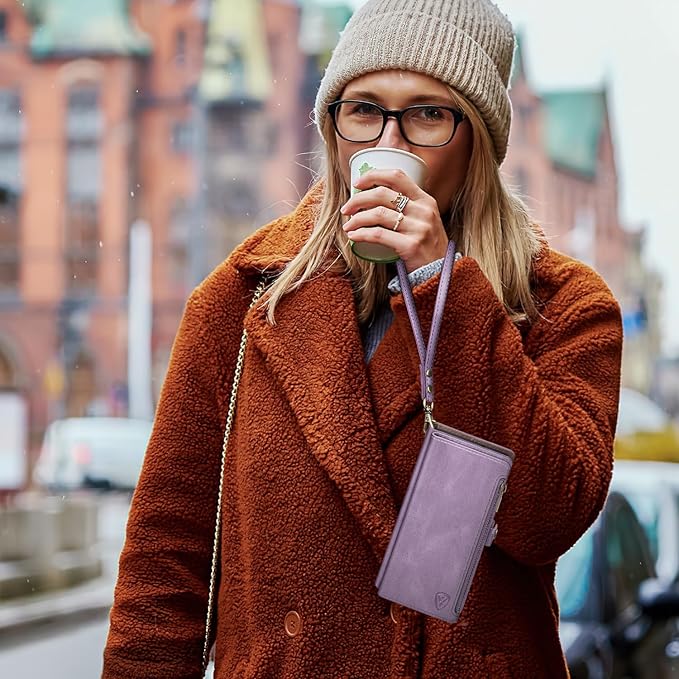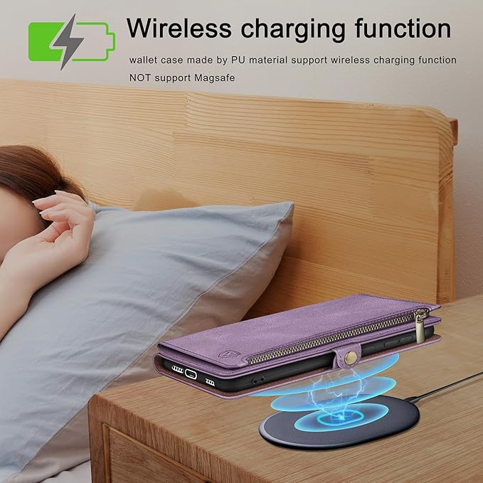 XcaseBar Compatible with iPhone 17 6.3" Wallet case with Zipper Credit Card Holder【RFID Blocking】,Flip Folio Book PU Leather Phone case Shockproof Cover Women Men for Apple 17 case Lilac Purple