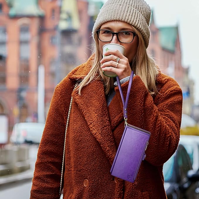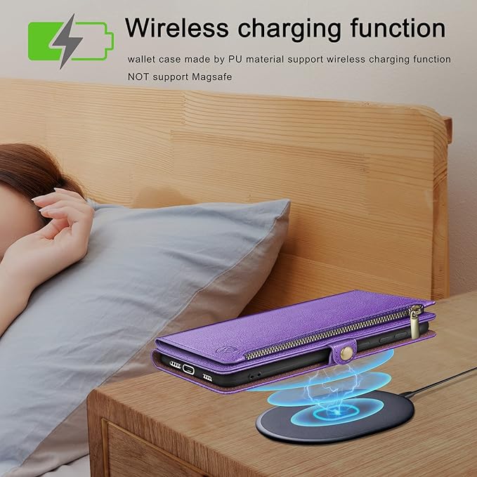 XcaseBar Compatible with iPhone 17 6.3" Wallet case with Zipper Credit Card Holder【RFID Blocking】,Flip Folio Book PU Leather Phone case Shockproof Cover Women Men for Apple 17 case Purple