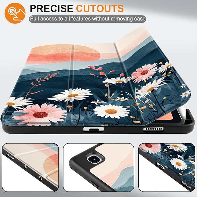 DONGKE Case for Samsung Galaxy Tab S6 Lite 10.4 Inch 2024/2022/2020, Trifold Stand + S Pen Holder + Auto Wake/Sleep + Soft TPU Protective Stand Back Cover, Daisies