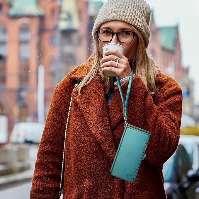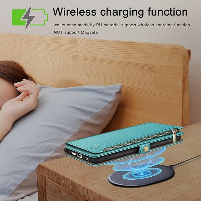 XcaseBar Compatible with iPhone 17 6.3" Wallet case with Zipper Credit Card Holder【RFID Blocking】,Flip Folio Book PU Leather Phone case Shockproof Cover Women Men for Apple 17 case Blue Green
