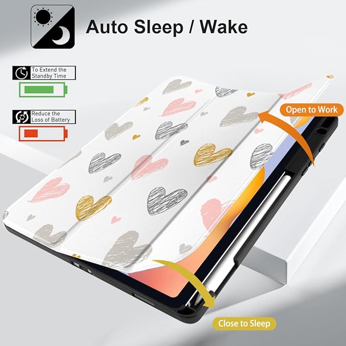 DONGKE Case for Samsung Galaxy Tab S6 Lite 10.4 Inch 2024/2022/2020, Trifold Stand + S Pen Holder + Auto Wake/Sleep + Soft TPU Protective Stand Back Cover, Cute Hearts