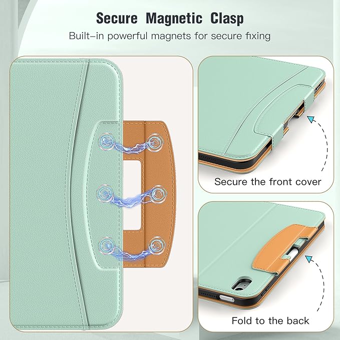 - Auto Wake/Sleep & Secure Magnetic Clasp: Magnetic smart cover supports auto wake/sleep function. The powerful magnetic clasp secures the a16 iPad case when closed and flips to attach magnetically to the back cover when opened