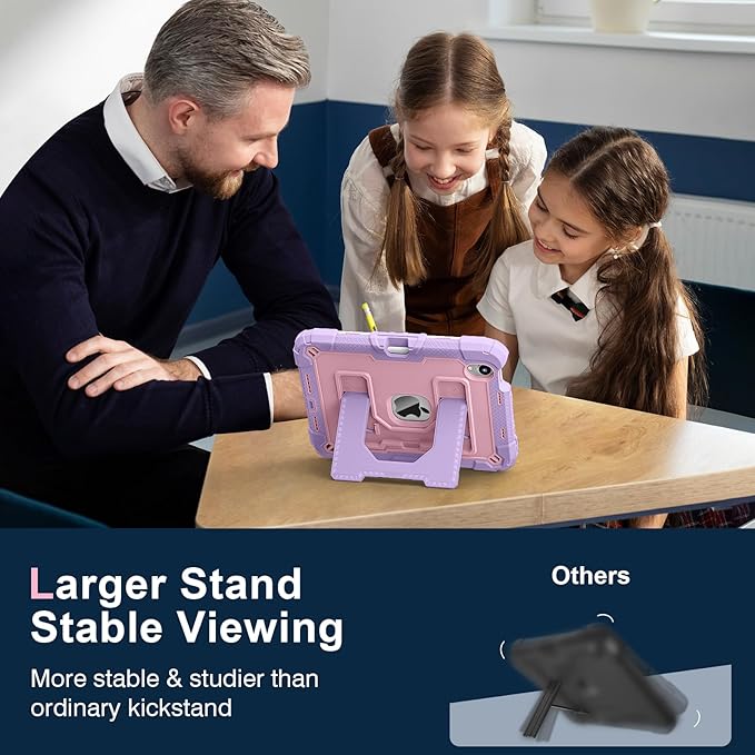 - Functional Kickstand / Handle: Choose optimal vertical and horizontal positions (2 Mode) based on your needs that allows easy access to your favorite shows, movies, and games while on the go. Foldable Handle: Easy-to-grab bump design is more friendly to kids and students. Children can enjoy their iPad anytime, anywhere. It's also worth offering a practical gift choice for kids, girls, boys, women, friends, students too