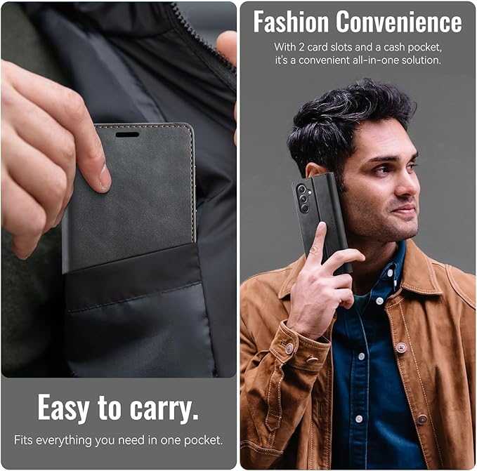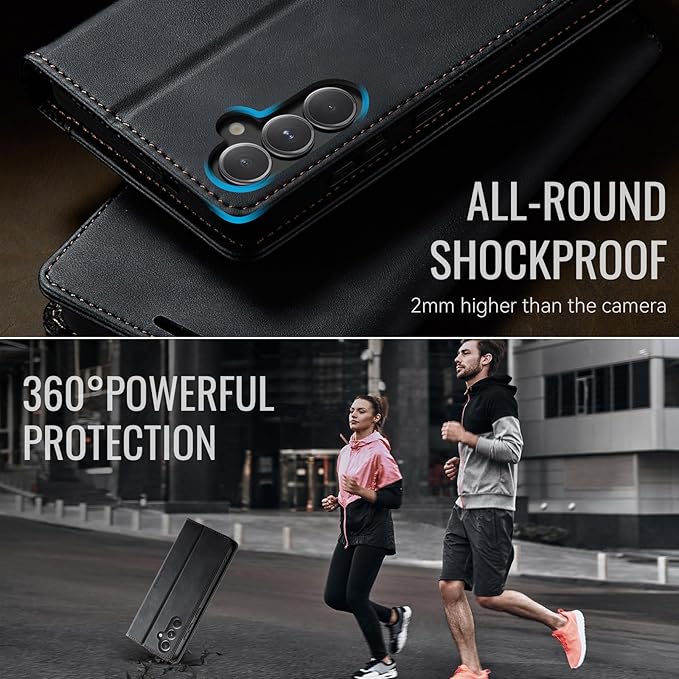 - [Quality Material] This protective Samsung S23 FE leather case is made from premium leather cover and soft TPU inner bumper, provides comfortable touch feeling and texture look, Avoid finger print and dirt, anti shocks and drops.