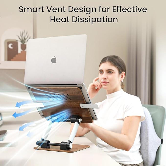 - ☝【Upgraded Heat Dissipation Design】There are hollow cutouts on the panel of the laptop stand. These incisions are designed to provide better airflow, prevent laptops and tablets from overheating, and effectively cool the devices to 5-8 ℃ for more stable operation.
