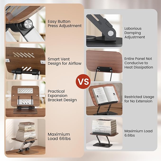 - ☝【Upgraded Load-bearing capacity】BEAUTRIP 2nd generation of book stand features a reinforced aluminum alloy frame that locks securely and can easily support heavy books and encyclopedias weighing up to 66 lbs,unlike the the 1st generation book stand which adopts dampers that require adjustment with a wrench.