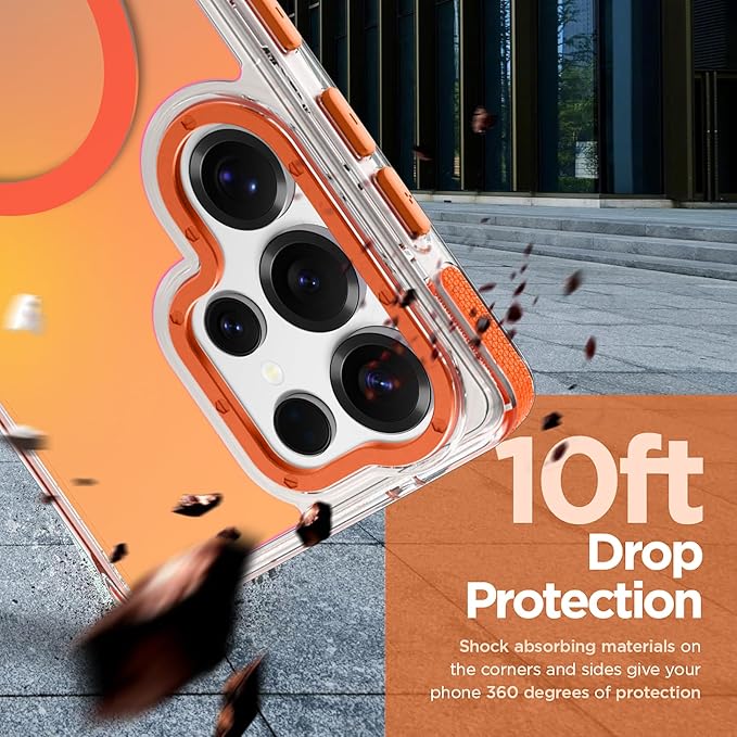 MOWIME Magnetic Case for Samsung Galaxy S25 Ultra [Compatible with Magsafe] [Cute Fashion Fluorescent Design] [1 Screen Protector] Slim Translucent Matte Case for Galaxy S25 Ultra 6.9", Orange