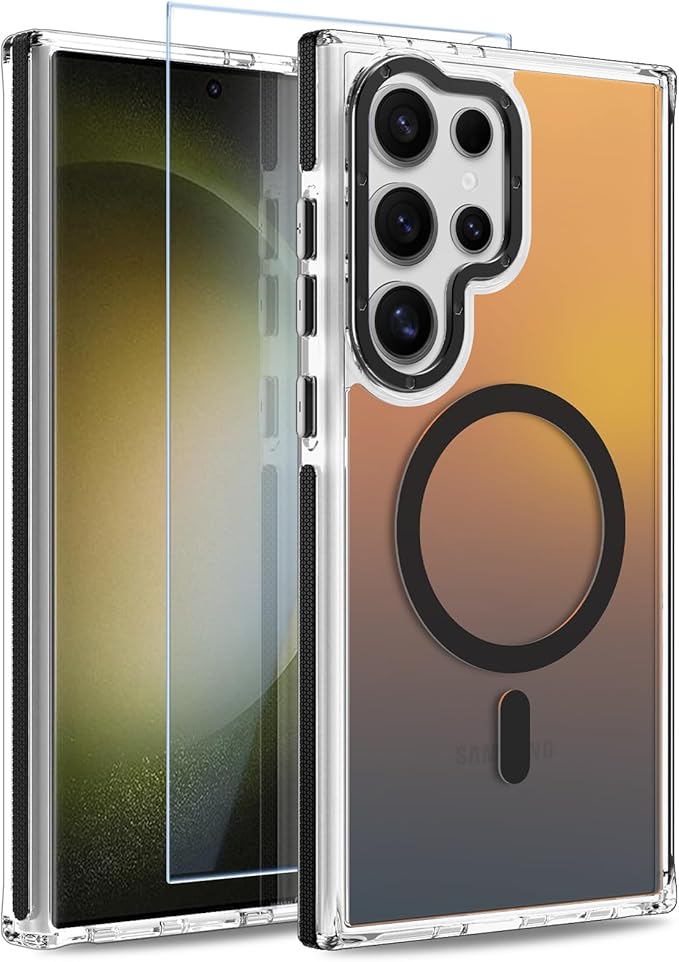 MOWIME Magnetic Case for Samsung Galaxy S23 Ultra [Compatible with Magsafe] [Cute Fashion Fluorescent Design] [1 Screen Protector] Slim Translucent Matte Case for Galaxy S23 Ultra 6.8", Black