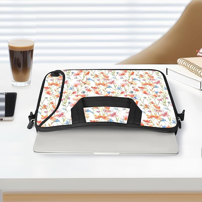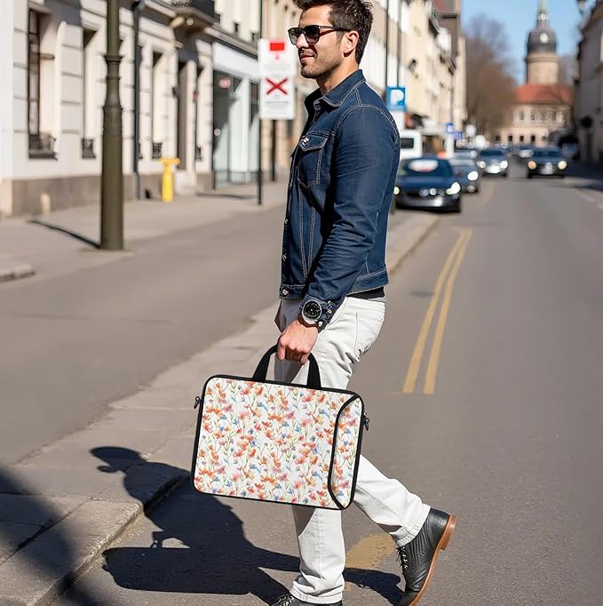RICHEN 14 15 15.4 15.6 inch Laptop Shoulder Bag Messenger Bag Notebook Handle Sleeve Neoprene Carrying Case with Accessories Pocket (14-15.6 inch, Flowers1)