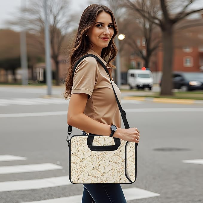 RICHEN 14 15 15.4 15.6 inch Laptop Shoulder Bag Messenger Bag Notebook Handle Sleeve Neoprene Carrying Case with Accessories Pocket (14-15.6 inch, Branches Birds)