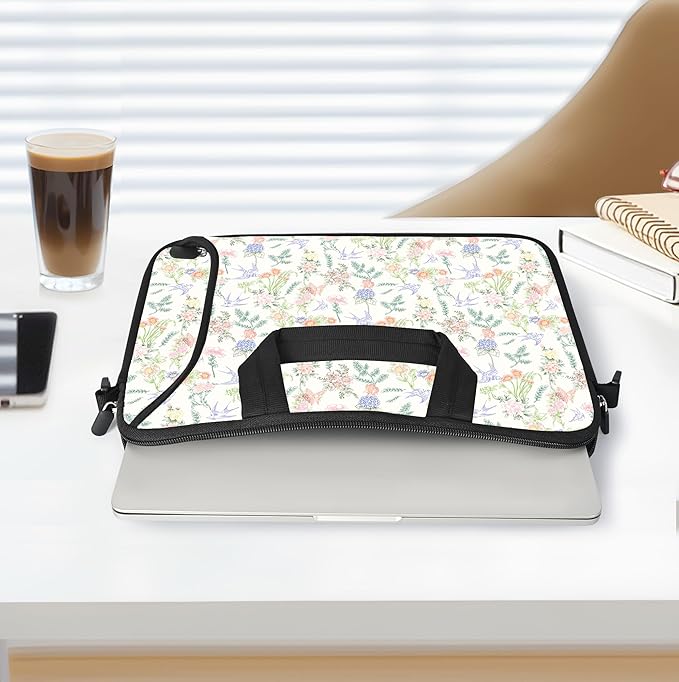 RICHEN 14 15 15.4 15.6 inch Laptop Shoulder Bag Messenger Bag Notebook Handle Sleeve Neoprene Carrying Case with Accessories Pocket (14-15.6 inch, Flowers Swallows)