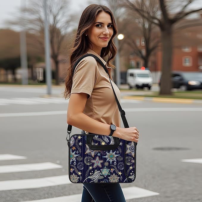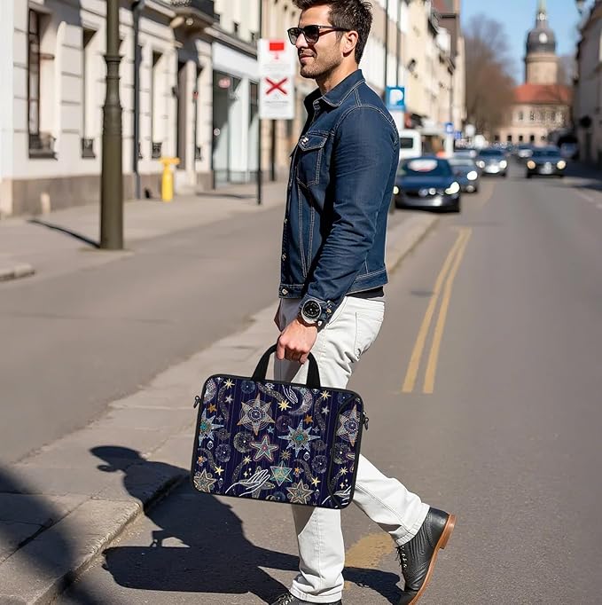 RICHEN 14 15 15.4 15.6 inch Laptop Shoulder Bag Messenger Bag Notebook Handle Sleeve Neoprene Carrying Case with Accessories Pocket (14-15.6 inch, Stars)