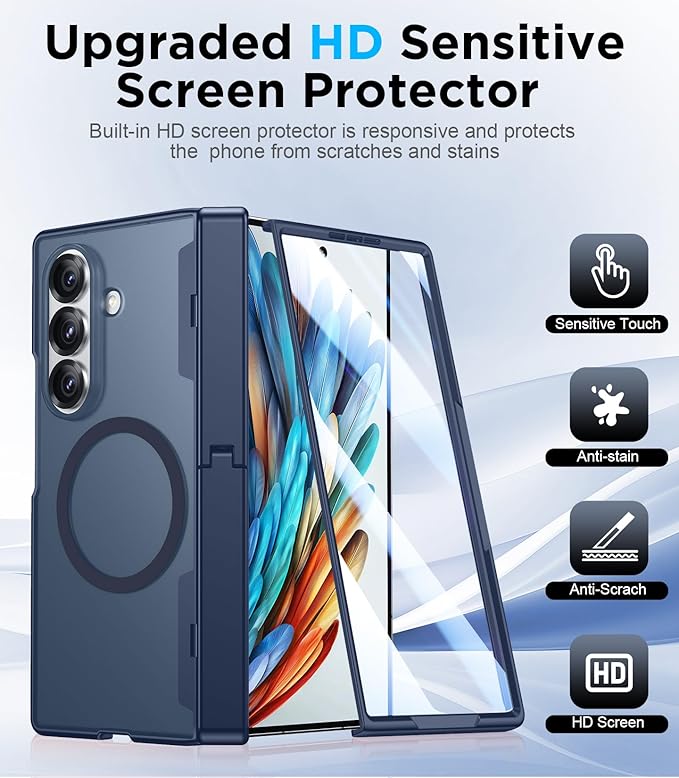 - [Compatible with MagSafe] This Samsung Z Fold 7 magnetic case is equipped with a strong N52SH magnet and is compatible with magnetic wireless chargers, wallets, car mounts, etc. Moreover, you don't need to worry about accidentally knocking your phone off the charger. Even if the Z Fold 7 doesn't have a built-in magnetic function, you can still enjoy using magnetic accessories with this magnetic Z Fold 7 phone case!