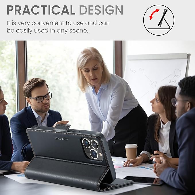 - [Multifunctional] This iPhone 13 Pro Max Flip Wallet Leather Case with Adjustable Stand frees up your hands by allowing you to watch videos or movies at the best angle.Whether you're studying,working,exercise or entertainments, this wallet case will meet your needs.