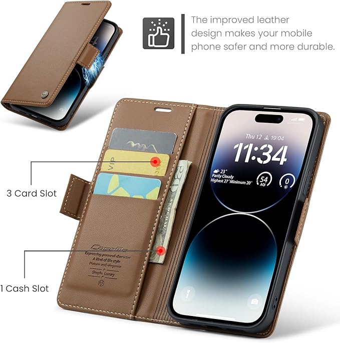 - [Multifunctional] This iPhone 14 Pro Flip Wallet Leather Case with Adjustable Stand frees up your hands by allowing you to watch videos or movies at the best angle.Whether you're studying,working,exercise or entertainments, this wallet case will meet your needs.