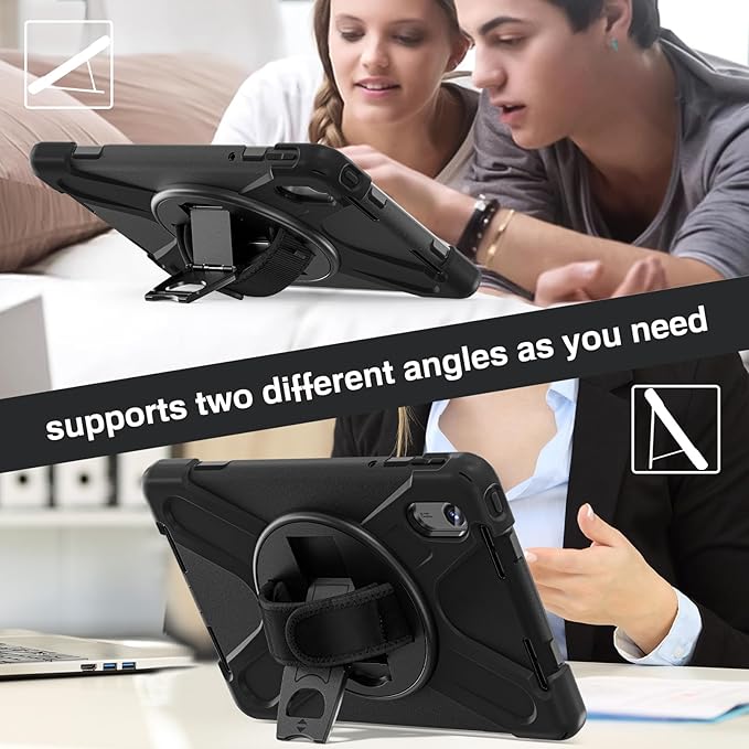 - 360° Rotating Kickstand – Shockproof case with rotating kickstand for vertical and horizontal viewing. Ideal for typing, gaming, reading, or watching videos.