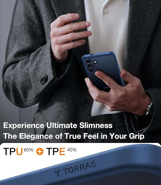 - Advanced Protection, Military-Grade Level: TORRAS X-Shock air cushioning structure and highly resilient TPU material offer military-grade protection to ensure your phone gets covered on all sides. The delicate screen and camera lens are protected by 1.7mm and 1.2mm raised bezels, effectively preventing scratches or accidental damage. Rigorously tested over 4000 times, this S25 plus phone case bids farewell to case cracks and camera scratches, giving you total peace of mind even during shocks and drops.
