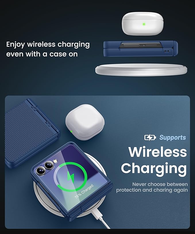 - 【New Slim Series】After months of meticulous design, the Vihibii Samsung Flip 7 case combines the idea of hinge protection with a slim design, ensuring your phone stays lightweight, and easy to carry while still providing plenty of protection. Additionally, the case supports wireless charging, eliminating the need to remove it while charging for added convenience