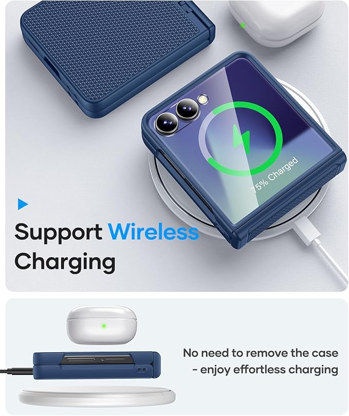 - 【New Slim Series】After months of meticulous design, the Vihibii Samsung Flip 7 case combines the idea of hinge protection with a slim design, ensuring your phone stays lightweight, and easy to carry while still providing plenty of protection. Additionally, the case supports wireless charging, eliminating the need to remove it while charging for added convenience