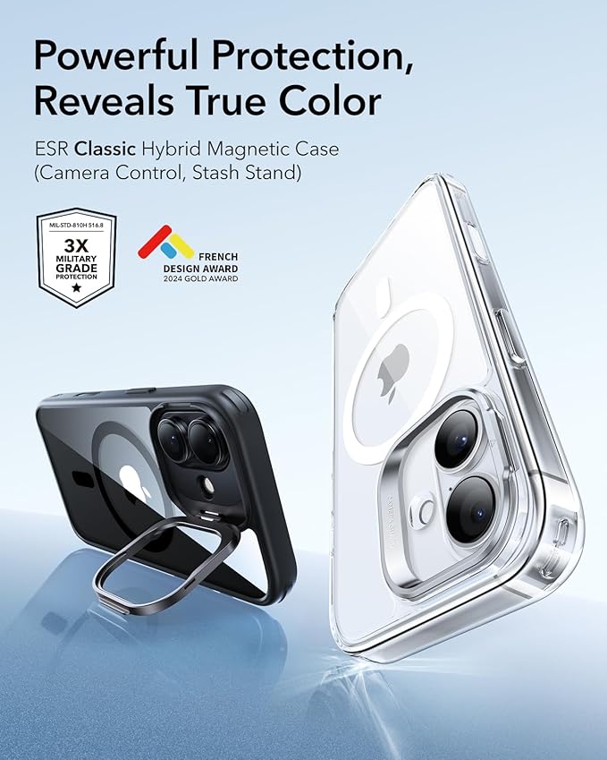 ESR for iPhone 17 Case with Stand, Camera Control Cover Compatible with MagSafe, Military-Grade Drop Protection Magnetic Phone Case for iPhone 17, Scratch-Resistant Back Cover,Clear Black