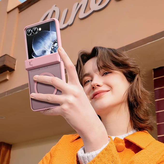 - 【Compatible with MagSafe】The Galaxy Z Flip 7 Magnetic Case comes with a built-in N52h strong magnet that is compatible with all magnetic MagSafe accessories, including wireless chargers,card holders,car phone mounts,and ring mounts/cradles. You can play games or watch videos while charging your phone without worrying about the power going down.Warm Tip: Some car mounts are not magnetic,such as the square car mount or the metal plate that comes with the car mount,then this case is not applicable