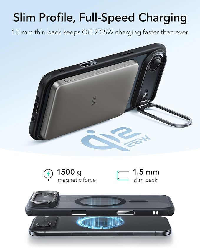 ESR for iPhone Air Case with Stand, Camera Control Cover Compatible with MagSafe, Military-Grade Drop Protection Magnetic Phone Case for iPhone 17 Air Case, Scratch-Resistant Back Cover,Frosted Black