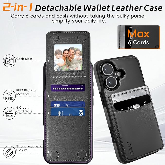 - Detachable Magnetic Card Holder: The new design provides 6 independent card slots for iPhone 16 case for drivers license, insurance cards, door access card, debit cards, etc. This case for iPhone 16 is suitable for all ages of women & men.