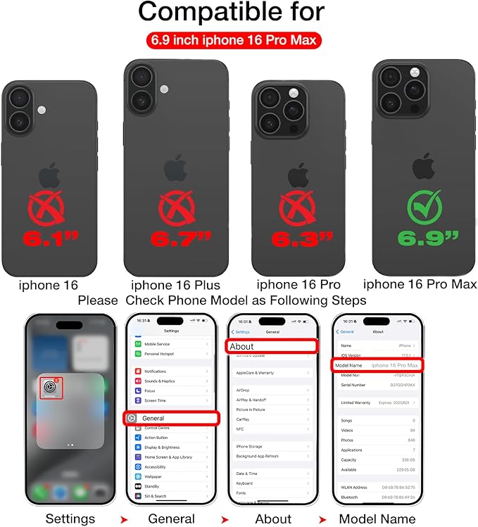 - Detachable Magnetic Card Holder: The new design provides 6 independent card slots for iPhone 16 Pro Max case for drivers license, insurance cards, door access card, debit cards, etc. This case for iPhone 16 Pro Max is suitable for all ages of women & men.
