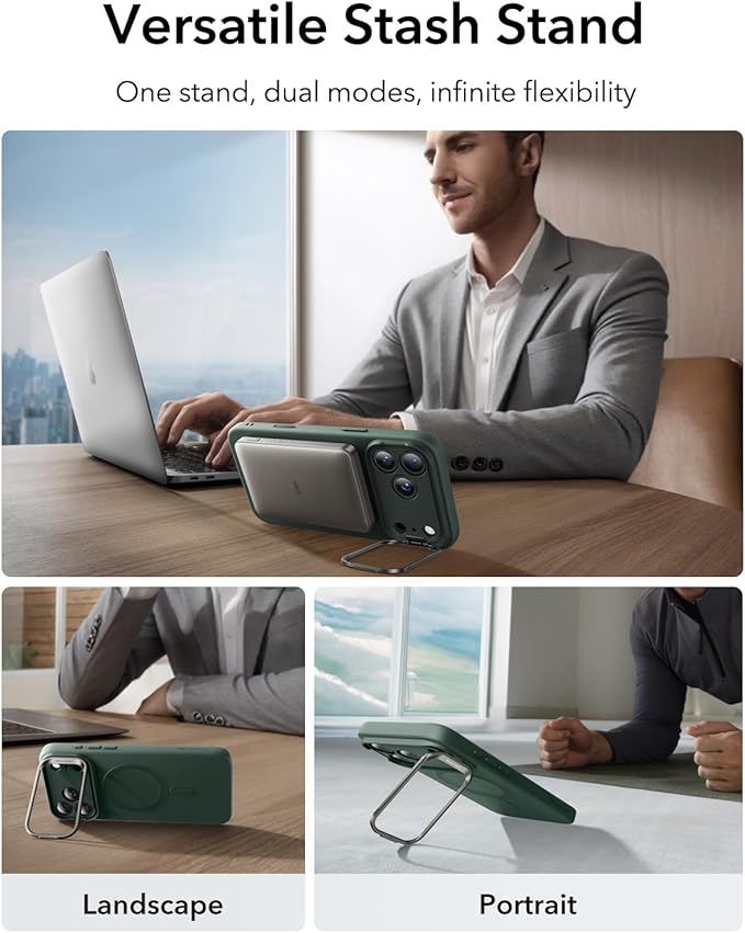 - Adjustable Stash Stand: positioned around camera frame to stay hidden when folded away while keeping MagSafe ring 100% unobstructed; enjoy a freely adjustable and stable view for watching shows whenever, wherever