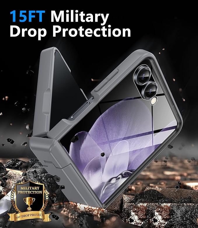 - 【360° Full Protection】 The Samsung galaxy z flip 7 phone case is military-grade drop-tested and made of rugged PC with built-in high-density shock-absorbing pads for extra shock protection. The case features a non-slip textured design that is ergonomically designed to provide excellent hand grip and slip resistance
