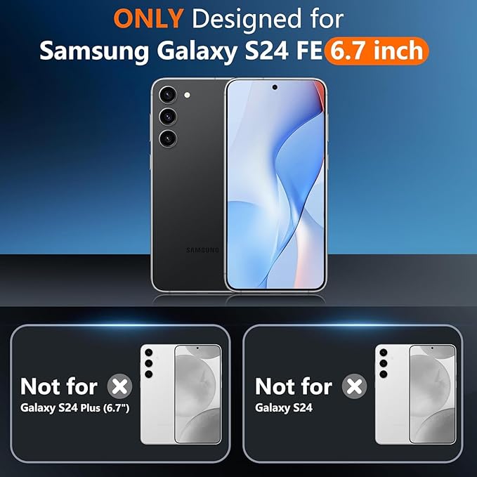 - Compatibility: Compatible with Samsung S24 fe 6.7 inch only(NO BUILT IN SCREEN PROTECTOR),
