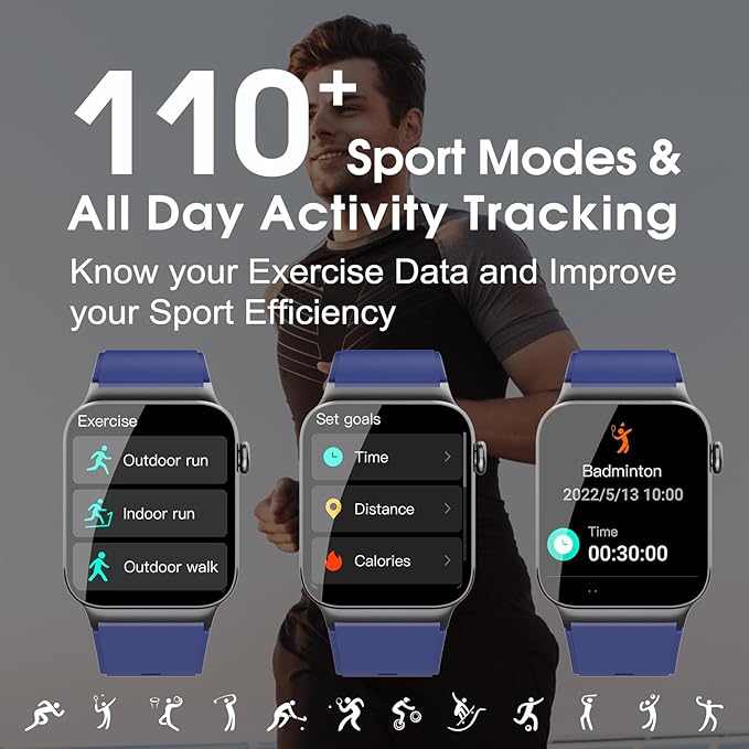 - Perfect Life Partner: The smart watch is not only a timekeeper, but also a caring assistant in your life. Incoming call and message notifications ensure that you will not miss important information. Daily functions such as alarm clock, music, calendar, etc. can be easily controlled by just raising your wrist. The fitness tracker 2-hour fast charge can provide 7 days of battery life and 30 days of standby time without frequent charging.