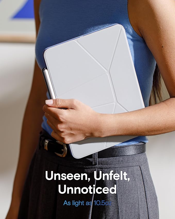 - As Light As 10.5oz - Like a thin yet powerful sheet of paper wrapping around your iPad, this folio offers effortless protection and versatile angles - perfect for any scene without the added bulk, all at just 10.5oz. (Weight varies by model)