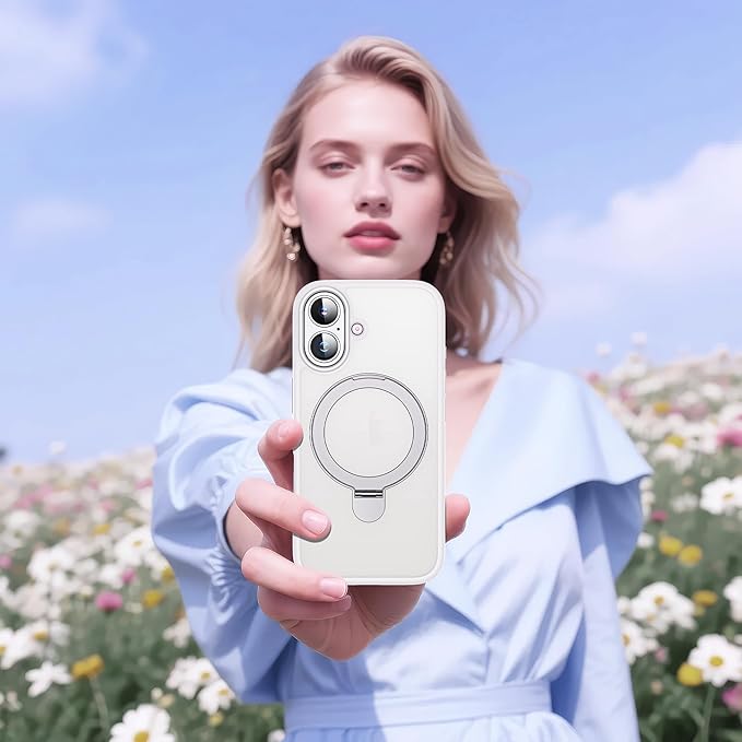 Designed for iPhone 16 Pro Max Case with Magnetic Ring Stand [Compatible with Mag-Safe] [Military Drop Protection] Shockproof Translucent Phone Cover 6.9" for Women Men,White
