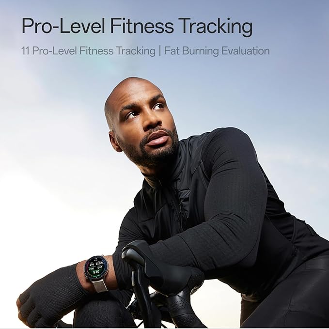 - PREMIUM DESIGN: 43mm polished stainless steel case with round display and black fluoroelastomer band, featuring a sleek and lightweight construction.
