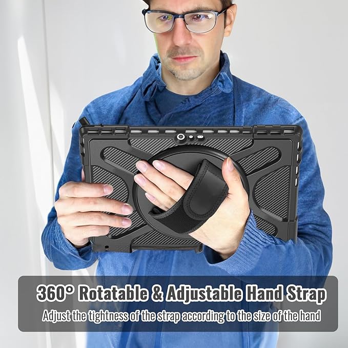 - 360 Rotatable and Adjustable Handle Hand Strap is made from premium soft fabric, fit for kids/adults, comfortable to hold the center gravity of Microsoft Surface Pro 7+ / Pro7 / Pro6 / Pro5 / Pro LTE / Pro 4 12.3 inch Tablet