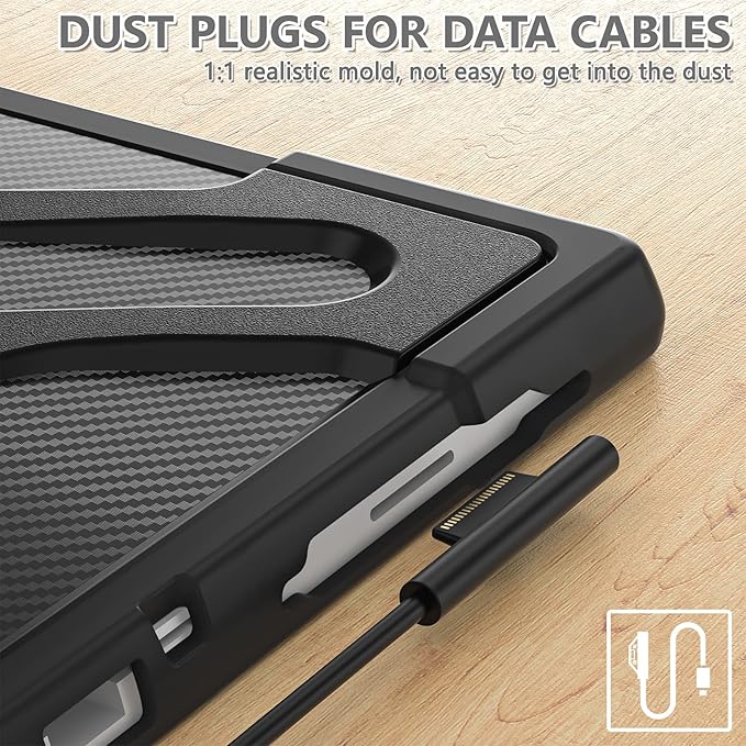 DreamerX for Microsoft Surface Pro 7+ Plus/7/6/5/4 Case 12.3" Case, Kids-Friendly Shockproof Rugged Business Cover Rotating Stand Hand Strap Pencil Holder, Compatible with Type Cover Keyboard, Black