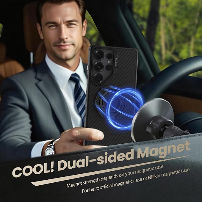 - Dual-Sided Magnetic Design: Nillkin MagSafe Phone Grip features a dual-sided magnetic design, connecting directly to any magnetic car mount without removal. Its military-grade high-strength magnets keep your phone secure even on bumpy roads. Note: Weakly magnetic phone cases may detach easily; silicone’s surface allows magnetic adsorption of iPhones/magnetic cases; Carbon Fiber’s surface allows magnetic adsorption of ferrous items (e.g., fridges, magnetic car mounts)