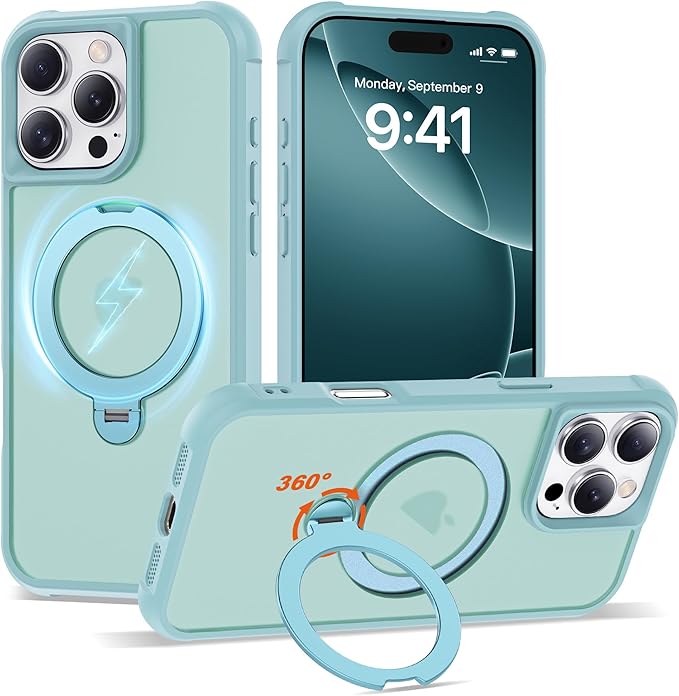 Compatible with iPhone 16 Pro Max Case with Invisible Magnetic 360°Spin Stand,Military-Grade Shockproof Protection [Compatible with Mag-Safe] Non-Slip Edge Translucent Case (6.9",Blue)