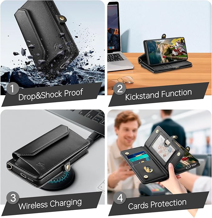 - 【Large Storage】---Features 6 card slots,1 photo slot and 1 cash pocket, transforming your phone into a convenient wallet