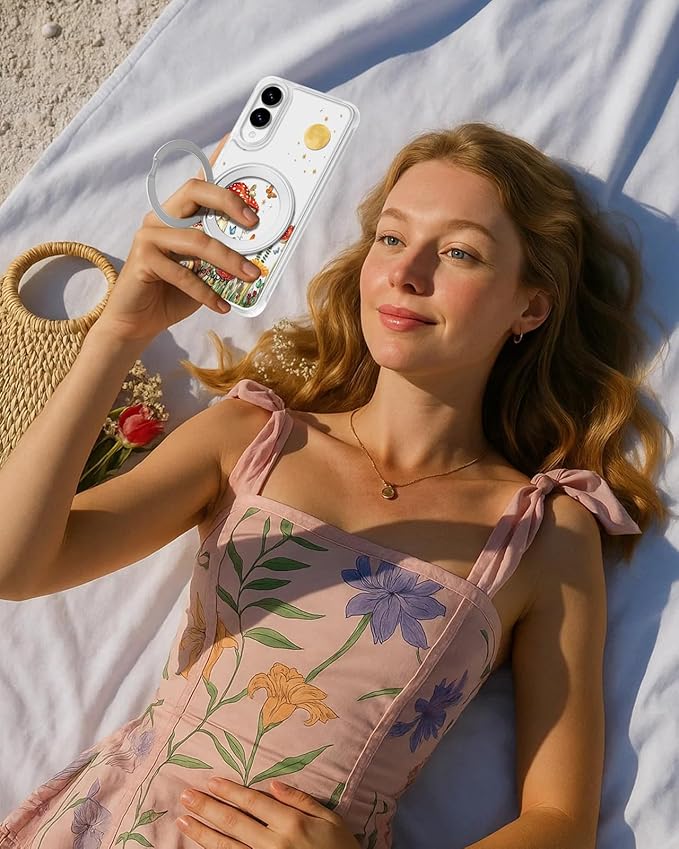 - Effortless Convenience for Everyday Life: The 360° rotating magnetic ring offers a secure grip and adjustable angles, ideal for hands-free video calls, streaming, or GPS navigation. Its strong magnetic connection ensures compatible with Magsafe chargers and seamless charging with accessories. Made with premium, matte, skin-friendly material, it resists smudges and fingerprints while the shockproof, anti-slip design protects against drops. Stylish, durable, and perfect for work or play