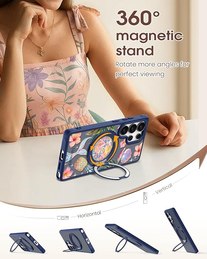 for Samsung Galaxy S25 Ultra Case with 360° Rotatable Magnetic Ring - Compatible with MagSafe, Semi-Transparent Anti-Fingerprint Soft-Touch Material Shockproof, Cute Y2K Design for Women Girl